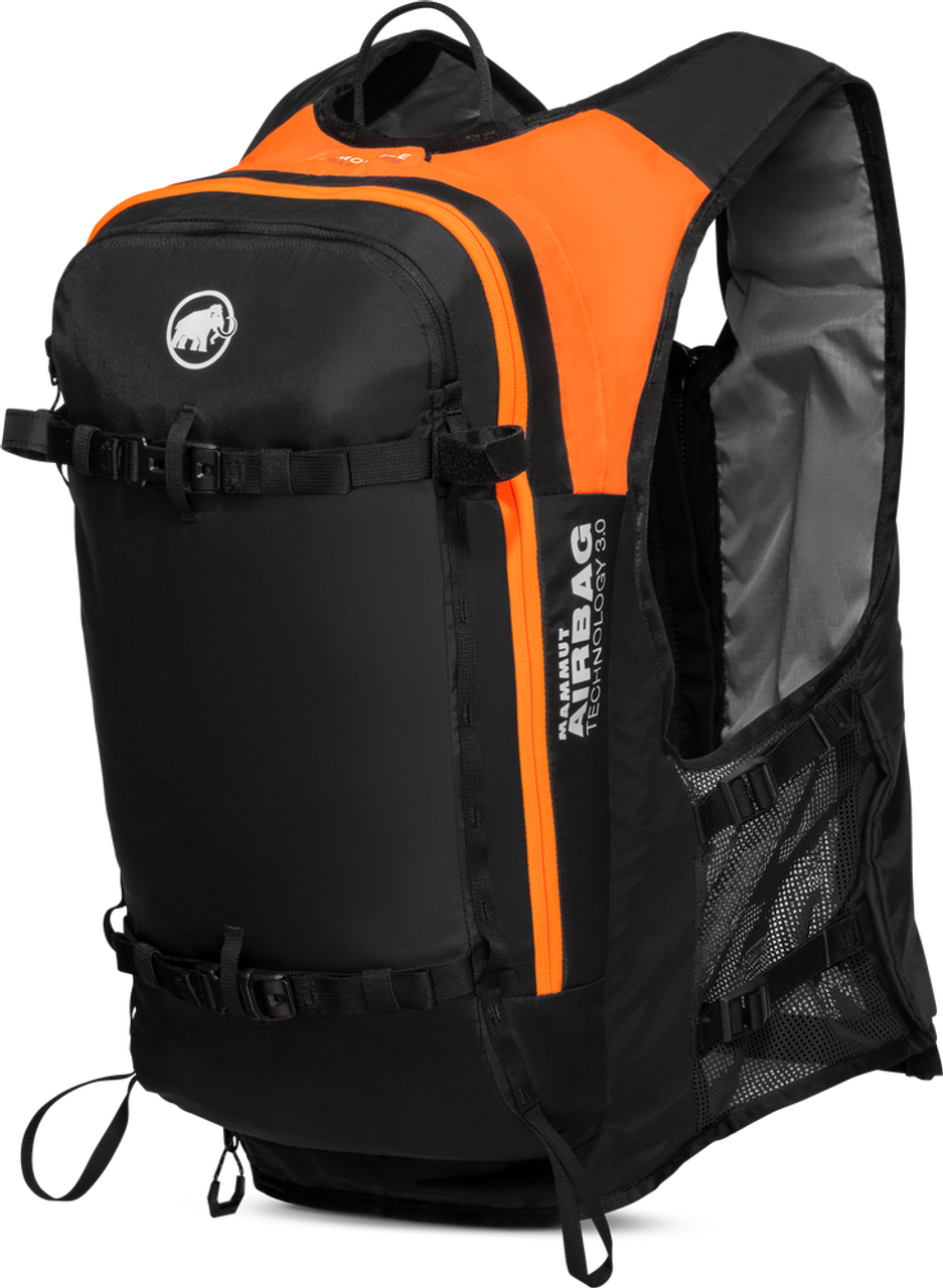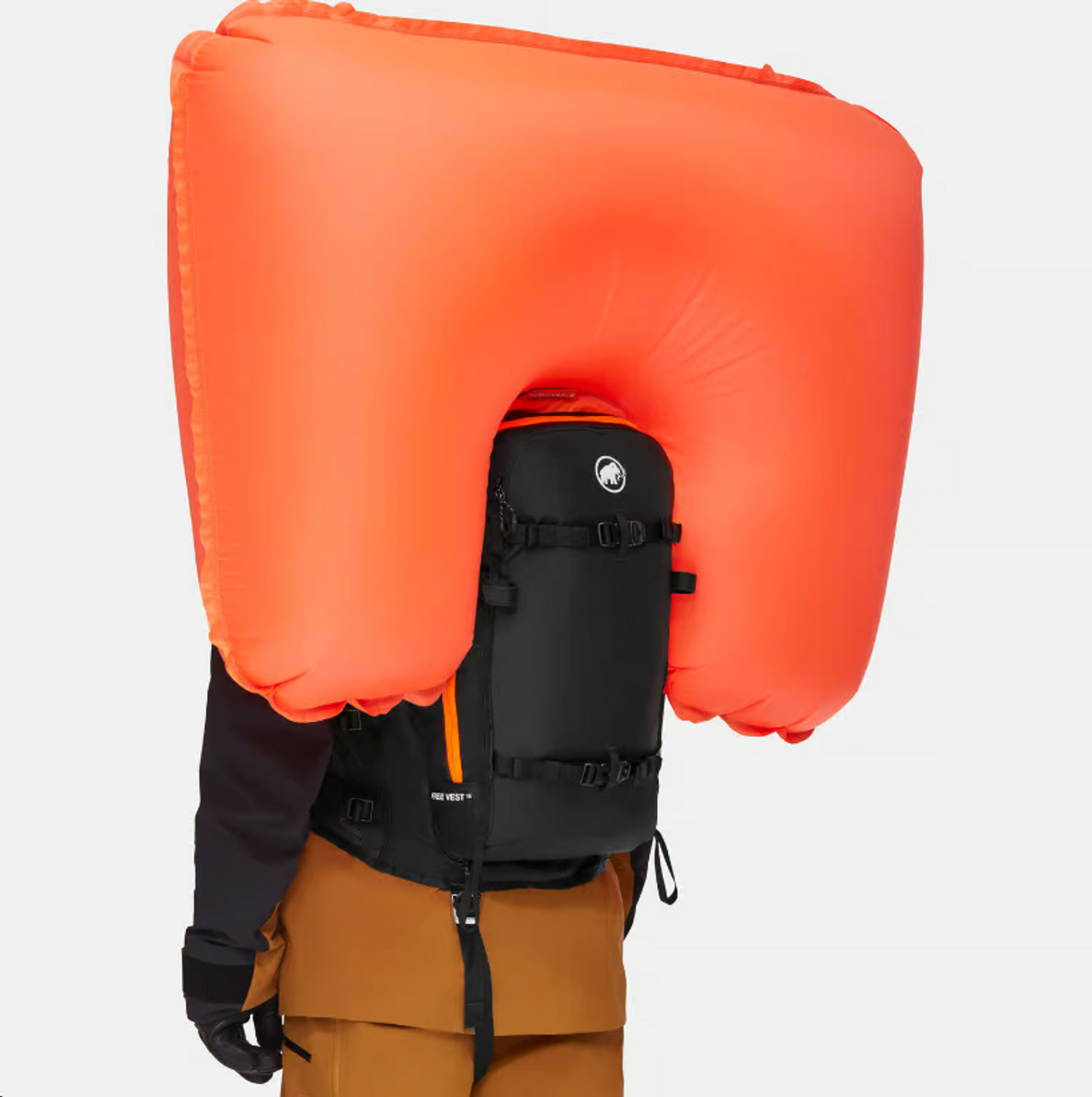 Maximum safety with optimal freedom of movement. The Free Vest 15 Removable Airbag 3.0 is lightweight, compact and has room for the equipment you need to stay safe when freeriding. Our Airbag System 3.0 is dependable, long-lasting and one of the lightest on the market. Orange elements make you more visible from a distance. The vest fits tightly to keep the weight from bouncing around while still allowing you to move freely. The 3D-molded back panel ensures excellent comfort and a perfect fit. Attach your skis or snowboard using the pull straps. Keep your safety equipment in the high-visibility orange main compartment. The vest is PFC-free, and both the outer fabric and lining are made of recycled material. To top it all off, the Free Vest 15 has useful features that include a helmet holder, side compression straps and loops for poles. Feel safe. Feel free. The pleasure of untracked powder.